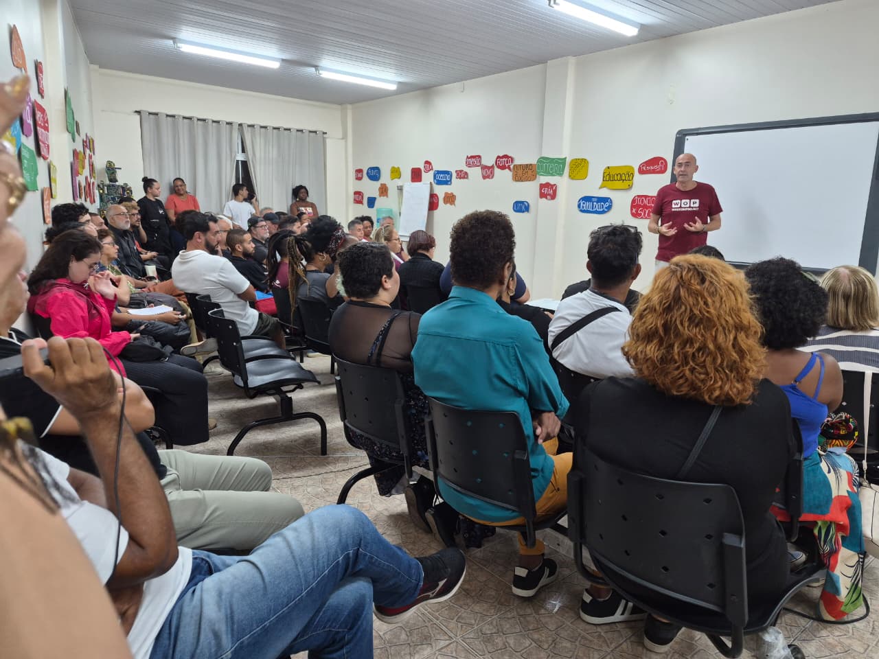 A reunião aconteceu na segunda-feira, 13, no Território do Futuro, no bairro Flamengo, e contou com cerca de 50 participantes, entre músicos, atores, cantores e artistas circenses.